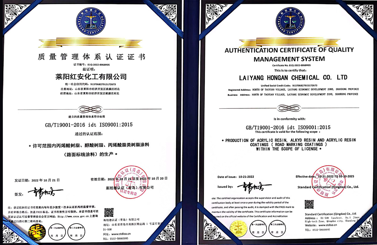 紅安化工經(jīng)過近二十年的打造和積淀,現(xiàn)已建成了一家專業(yè)研制生產(chǎn)涂料合成樹脂的綜合型工廠,位于山東省半島的腹地--萊陽市。公司已通過了三體系認(rèn)證,即ISO9000質(zhì)量管理體系認(rèn)證和環(huán)境、職業(yè)健康安全管理體系認(rèn)證,并獲得了六項(xiàng)國家發(fā)明專利,八項(xiàng)實(shí)用新型專利;19年榮獲山東省高新企業(yè)稱號(hào),22年通過了復(fù)審;22年榮獲山東省瞪羚企業(yè)稱謂,還有其他一些榮譽(yù)稱號(hào)不再一一敘說。 公司現(xiàn)有樹脂合成反應(yīng)釜29套,各類樹脂年生產(chǎn)能力約8萬噸,具有完善的檢測儀器和應(yīng)用服務(wù)條件。